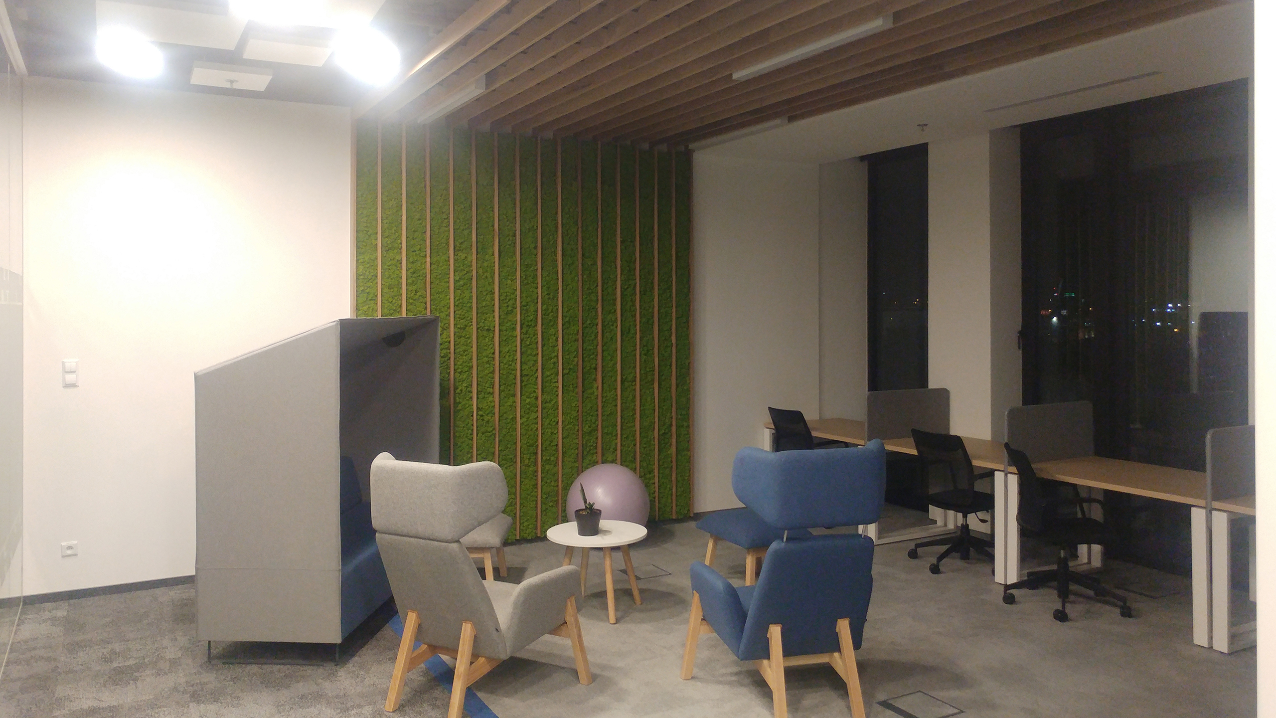 Wśród zrealizowanych aranżacji znajdują się projekty powierzchni biurowych dla wielu